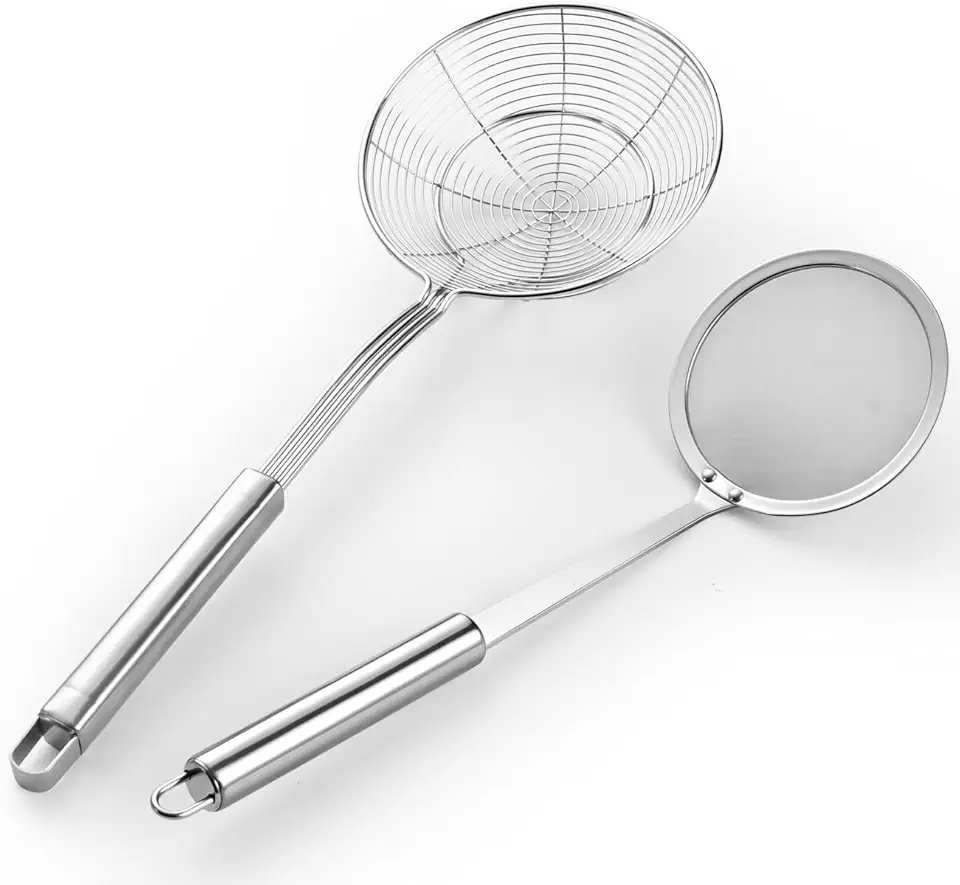 5.3 Inch Spider Strainer With Mesh Fatsoff Soup Scoop,Slotted Spoon For Cooking,Fat Skimmer Spoon For Kitchen Fryer Basket